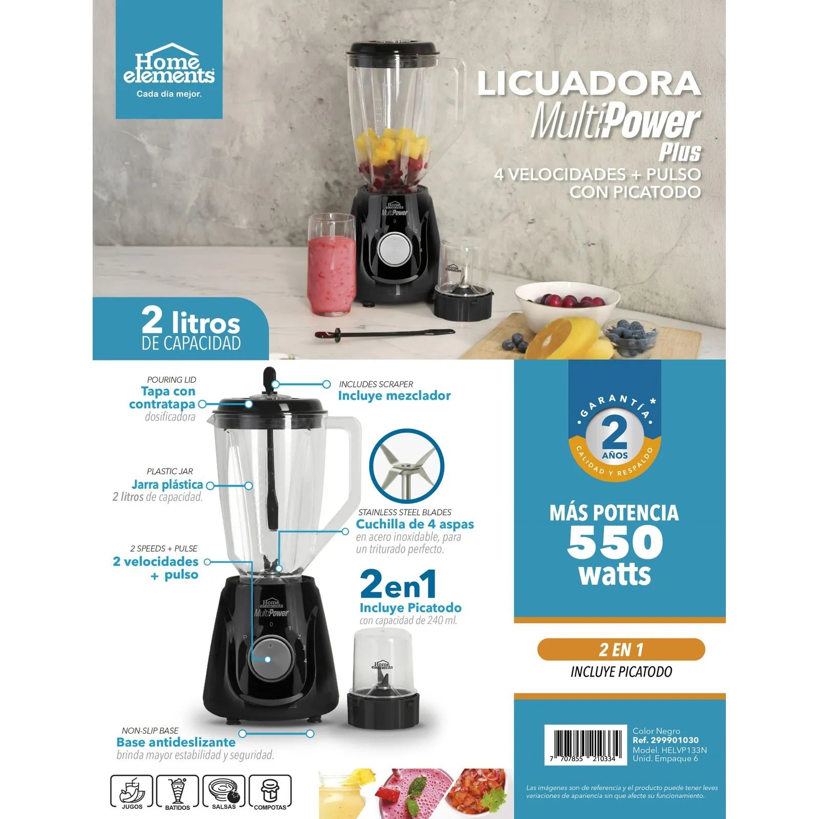 Licuadora 2 Litros Con Picatodo 4 Velocidades Home Elements