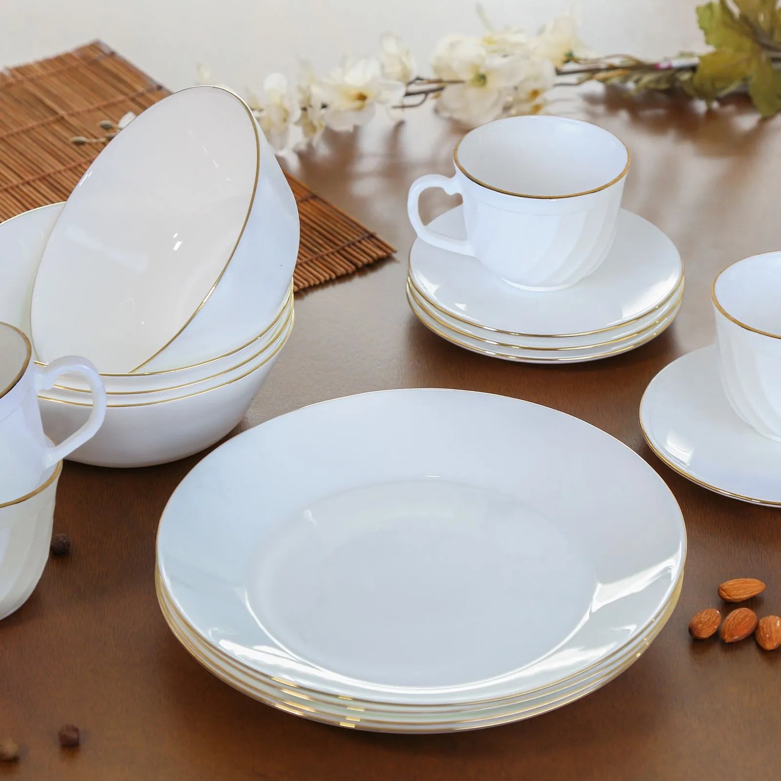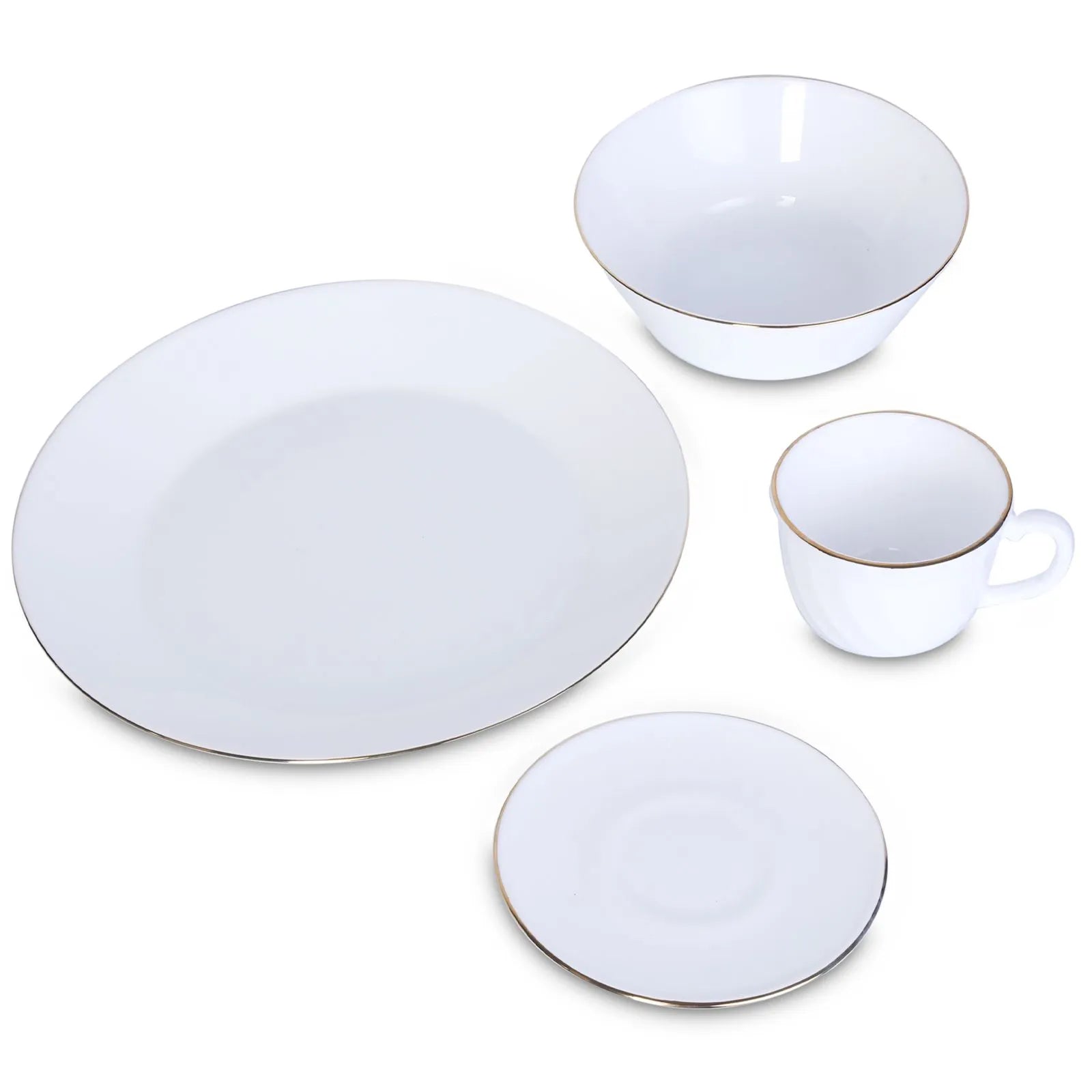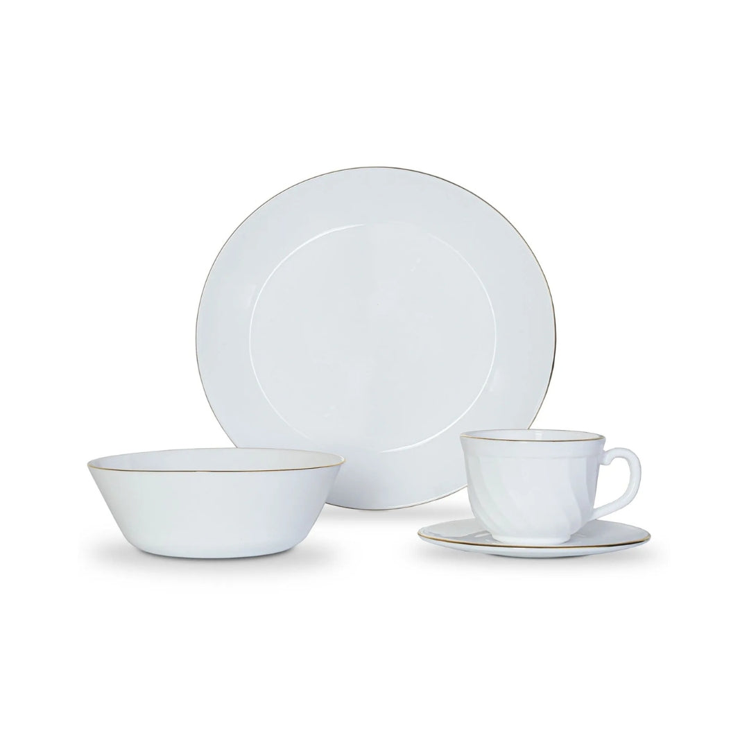 Vajilla Vitrocerámica 4/16 Decorada Borde Dorado